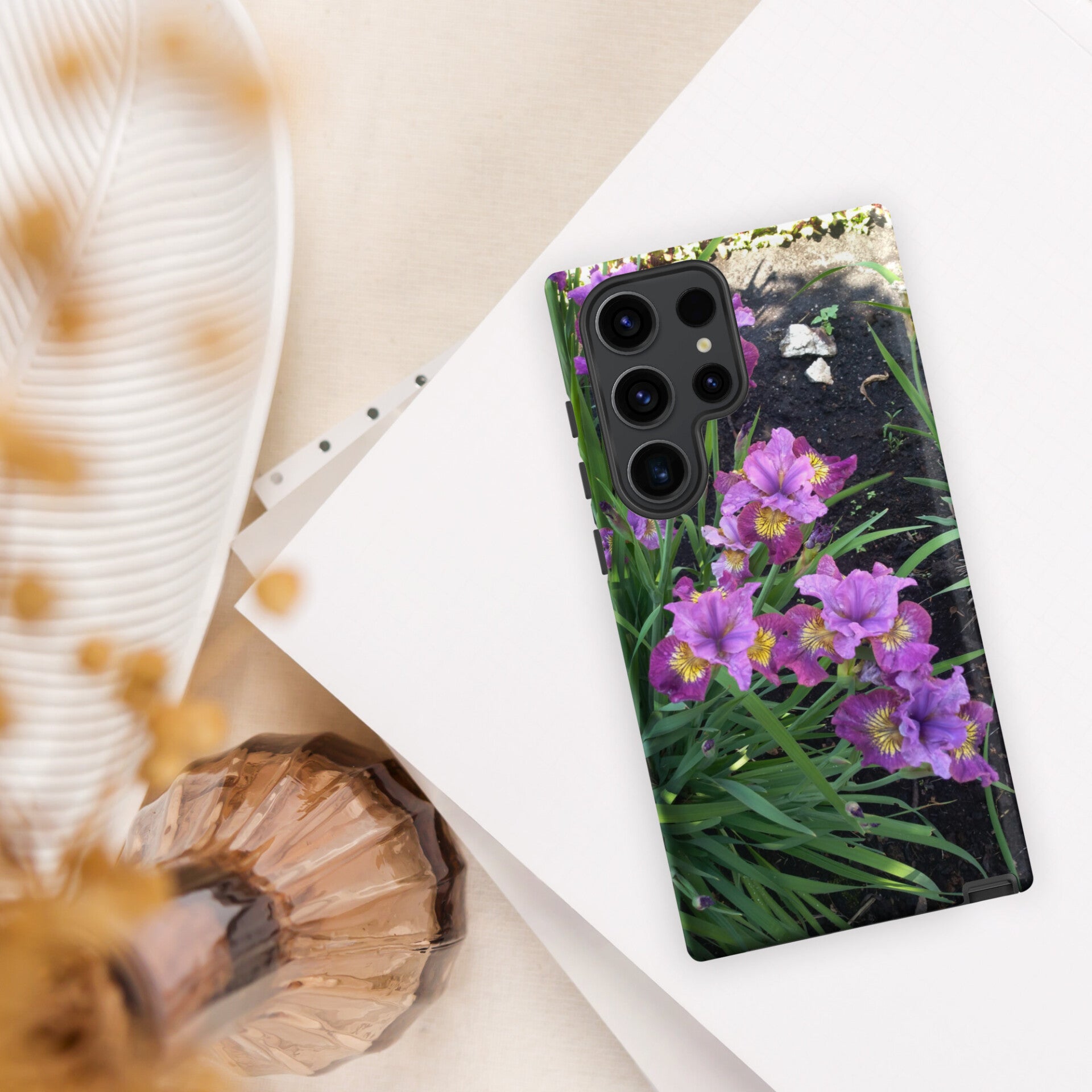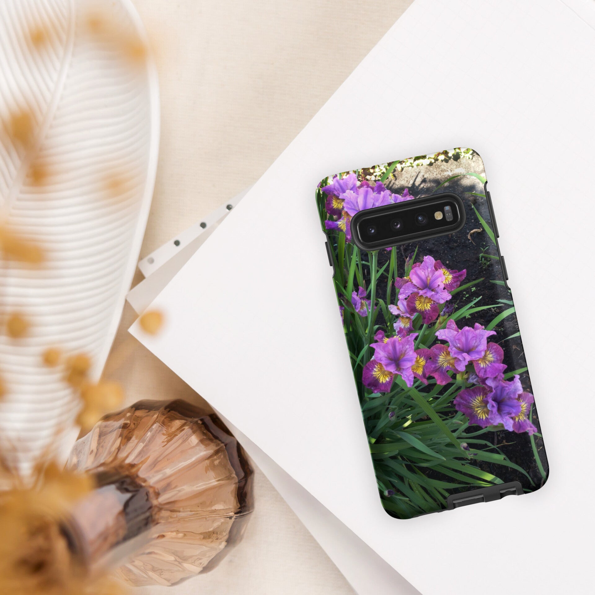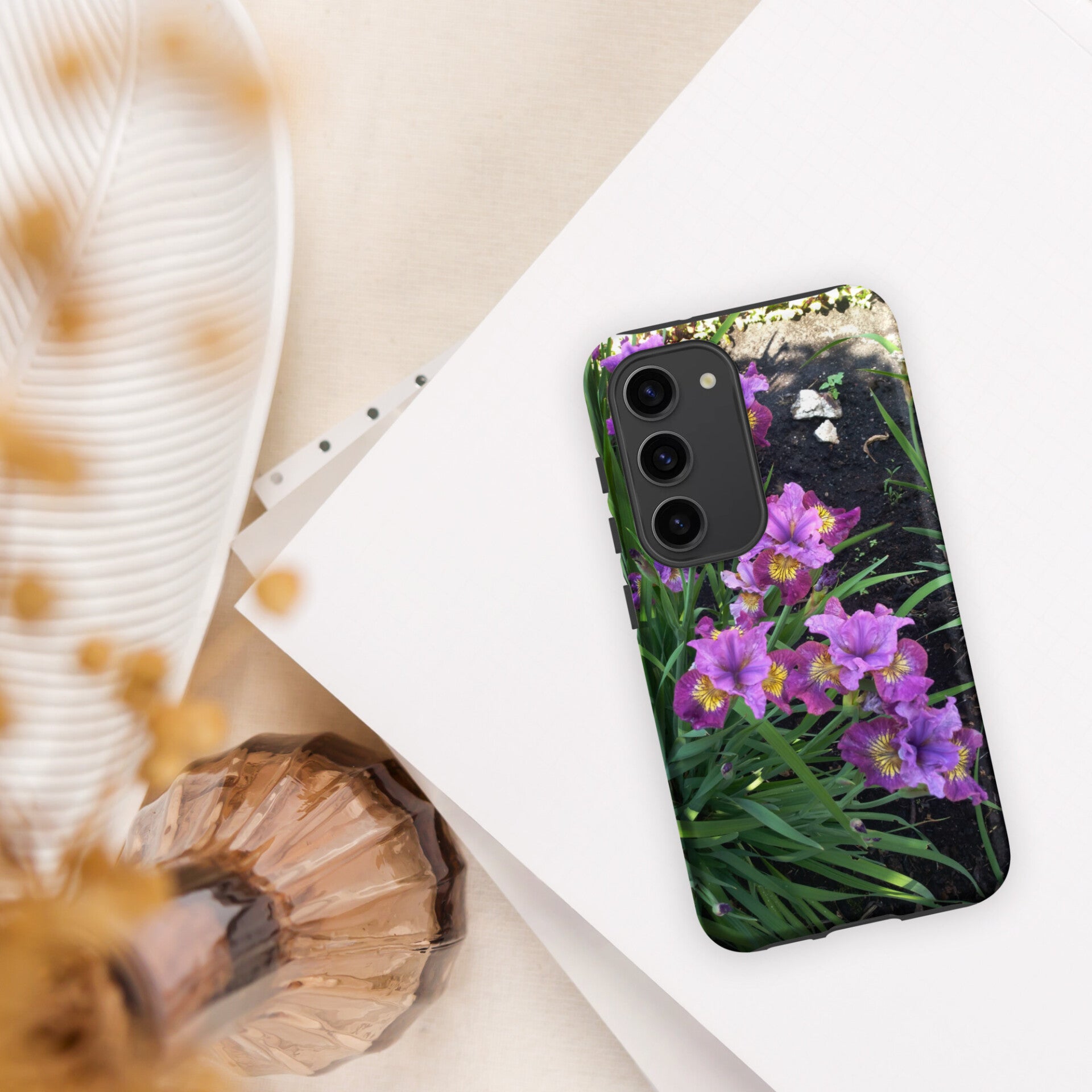 Sick of boring phone cases that don’t match your style? With all-over sublimation printing, this phone case is designed with high-quality graphics that won't fade or peel over time. It’s crafted with impact-resistant and shock-absorbing materials that protect your phone from bumps and scratches. The dual-layer design keeps your phone extra safe from accidental drops. In design creation is used real iris photo. Photo was taken in Latvia. All copyrights reserved by Elfie's world.