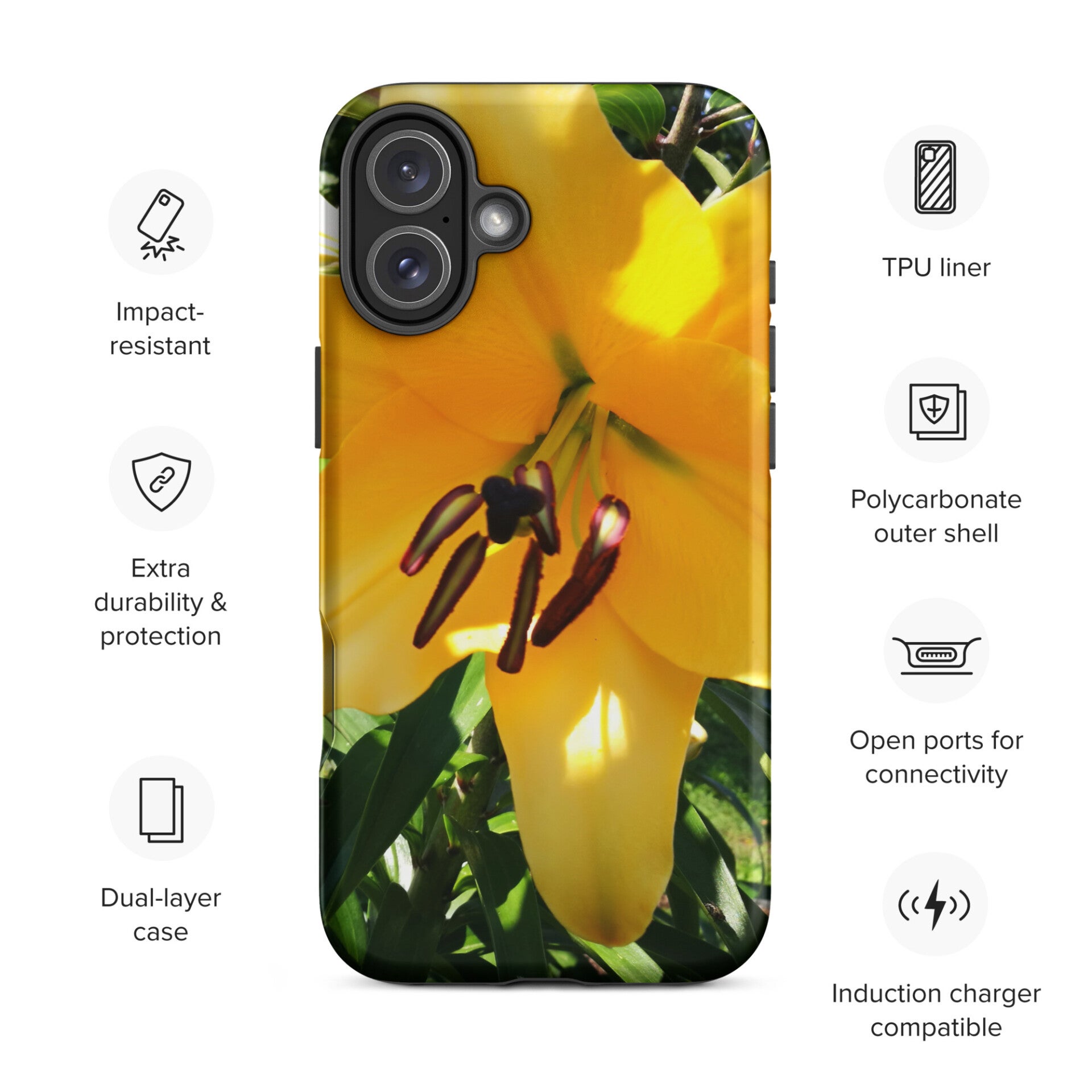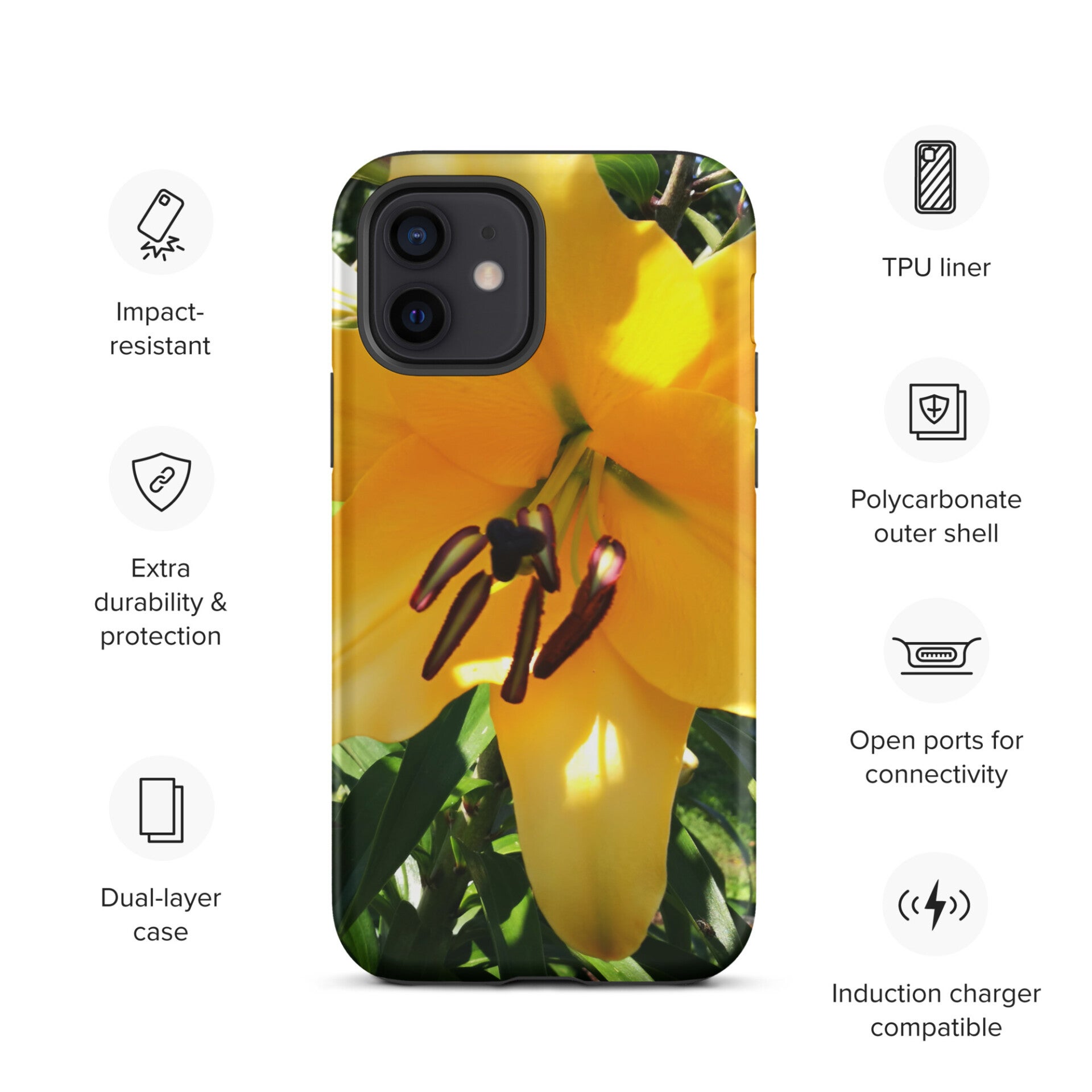 iPhone tough case with yellow lilly
