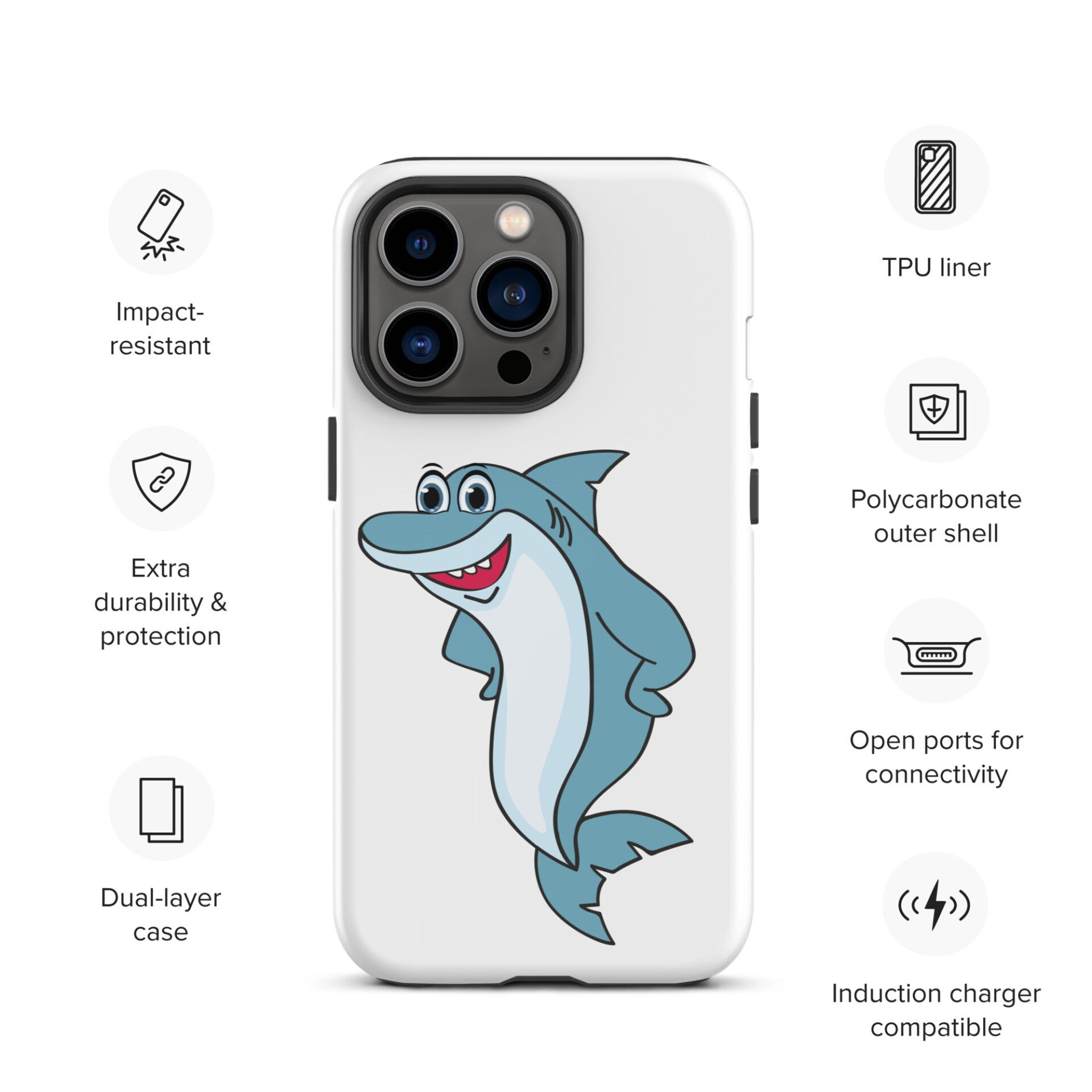 iPhone tough case with shark, white