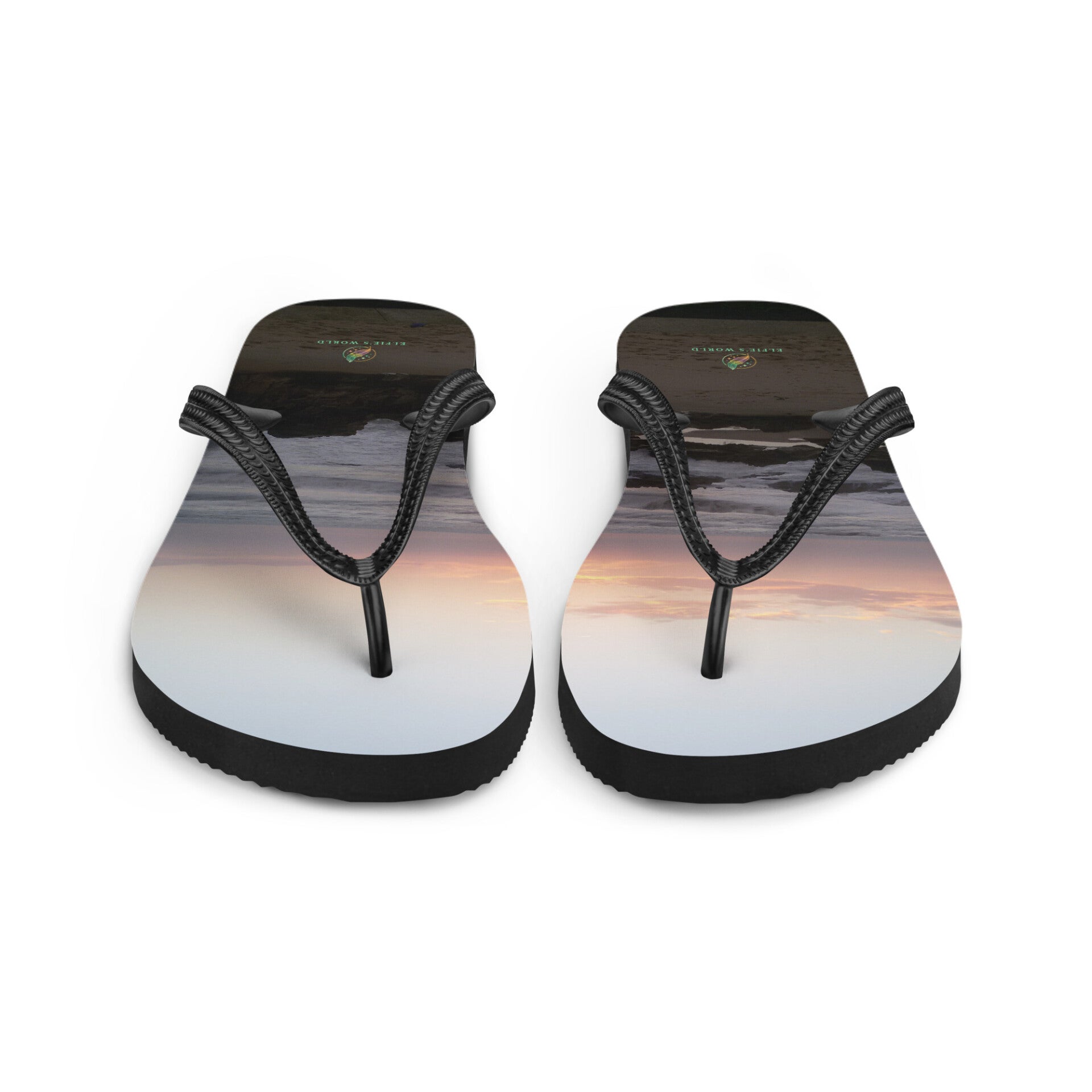 Make long summer days even more enjoyable with these customizable flip flops. The comfy rubber sole is lined with a soft polyester fabric that is looking great with our vivid prints on it. In design creation is used real sunset photo. Photo was taken in Monster, Netherland. All copyrights of design reserved by Elfie's world.