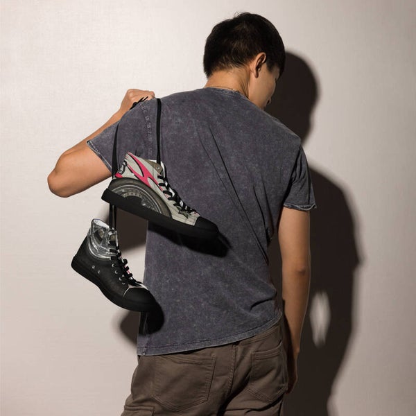Men's High Top Canvas Shoes with white- pink car body and stars