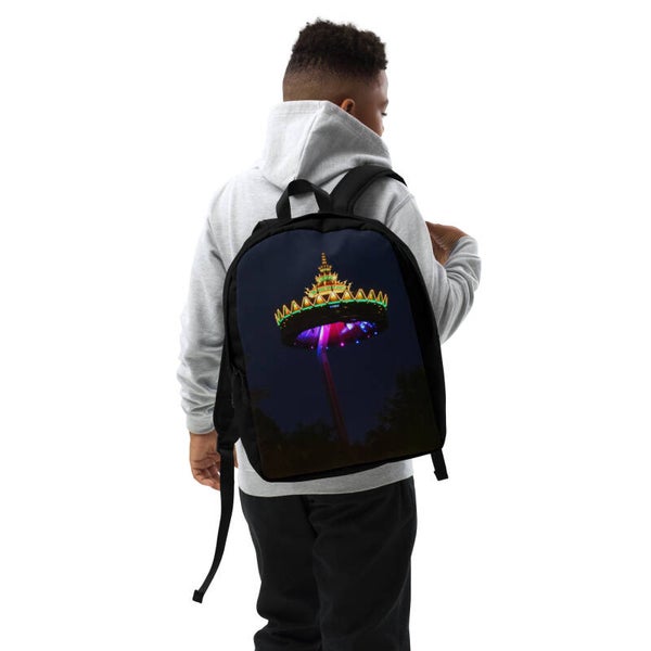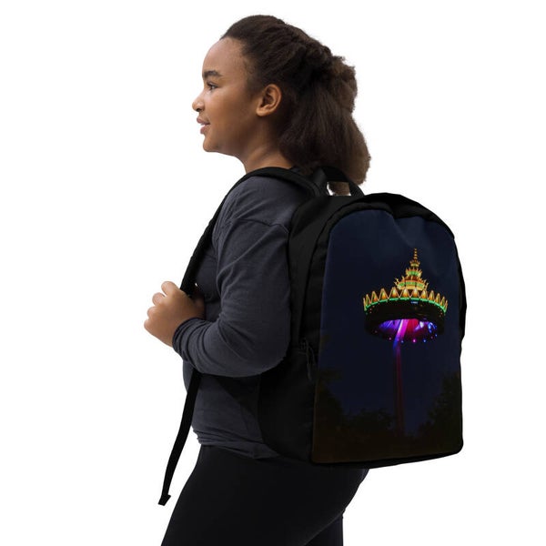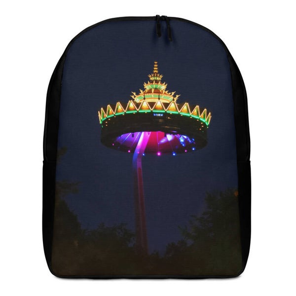 Here’s a spacious backpack for people on the go! Minimalist Backpack is made from a water-resistant material. It has a large inside pocket for a laptop and a hidden pocket that's perfect for keeping valuable items safe and accessible while traveling. In design creation is used amusement park panorama tower photo. Photo was taken in Kaatsheuvel, Netherland. All copyrights of design reserved by Elfie's world.