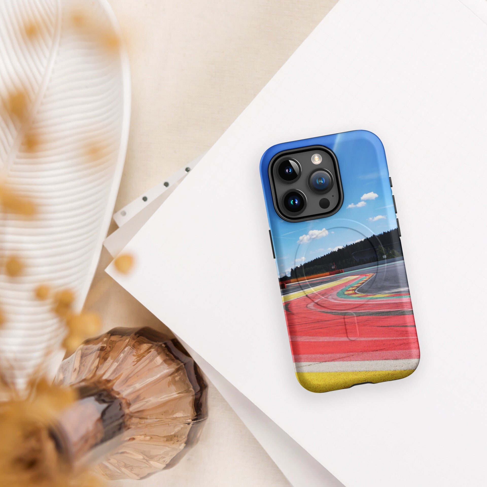 Made with a dual layer for extra durability and protection, this tough case keeps phones safe with an impact-resistant outer shell and an impact-absorbing inner liner. The built-in magnets ensure a secure attachment, faster wireless charging without removing the case. In design creation is used real Francorchamps circuit photo. Photo was taken in Stavelot, Belgium. All copyrights of design reserved by Elfie's world.