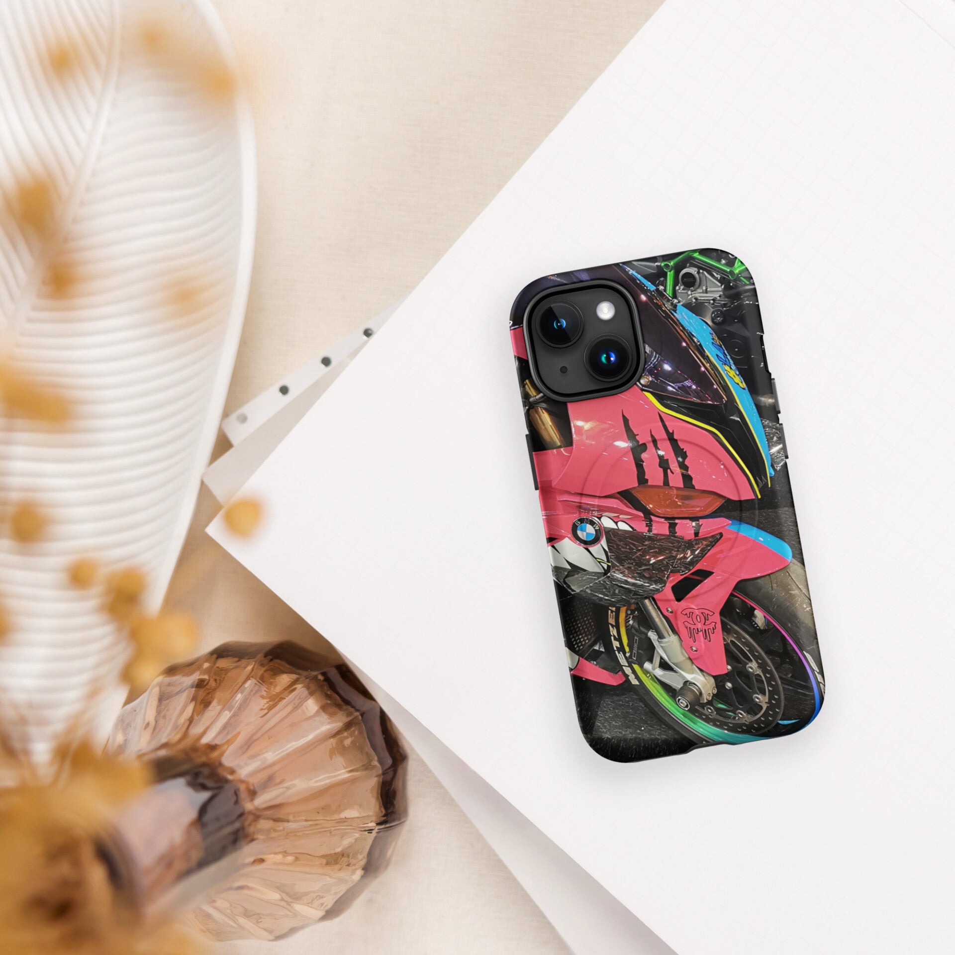 Made with a dual layer for extra durability and protection, this tough case keeps phones safe with an impact-resistant outer shell and an impact-absorbing inner liner. The built-in magnets ensure a secure attachment, faster wireless charging without removing the case. In design creation is used real motorbike photo. Photo was taken in car show in Rotterdam, Netherland. All copyrights of design reserved by Elfie's world.