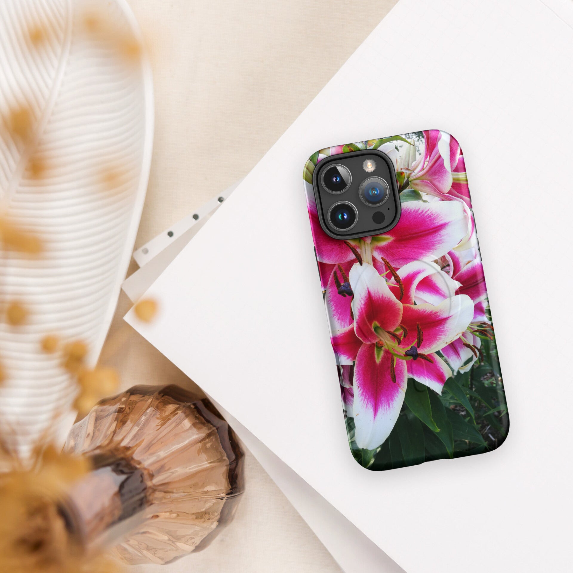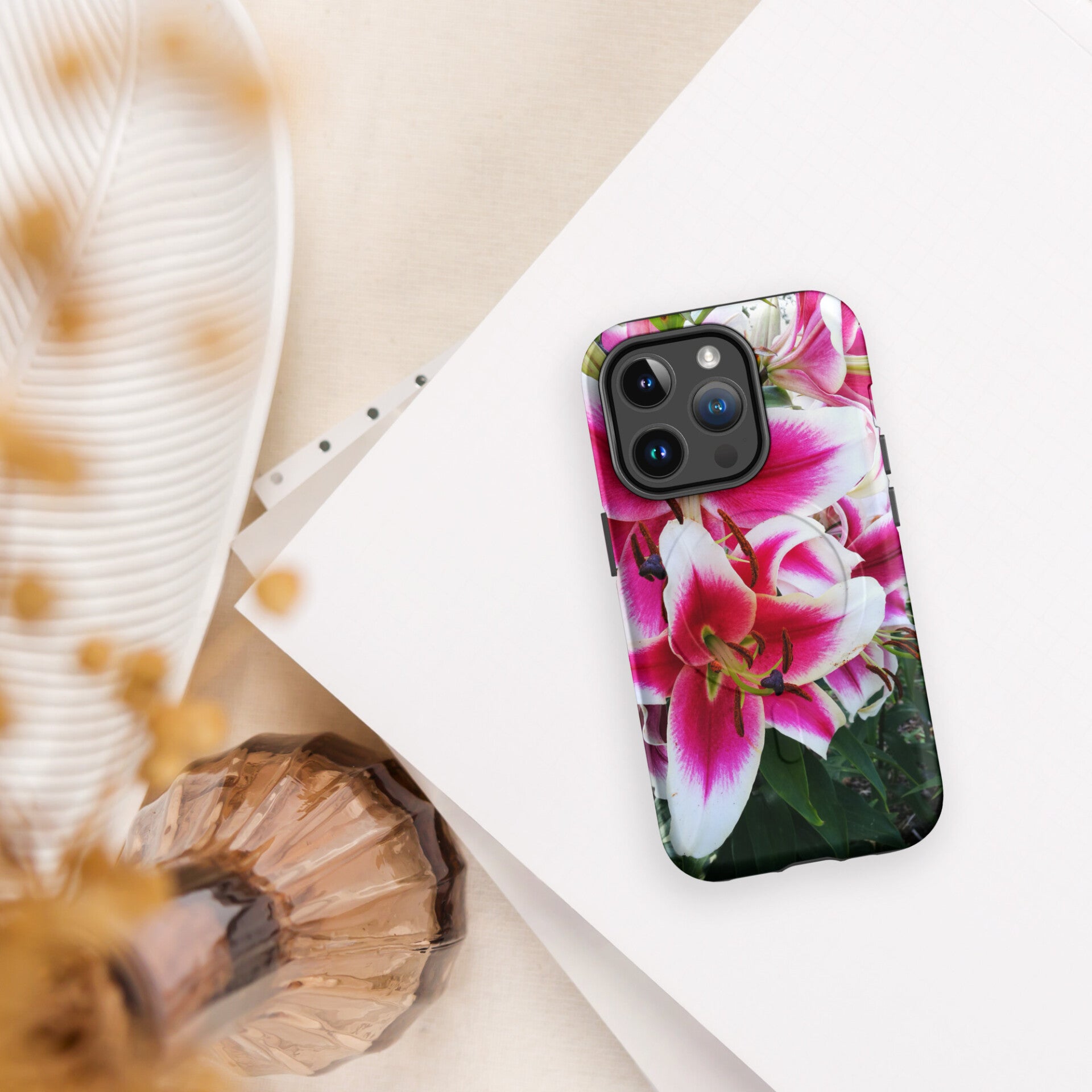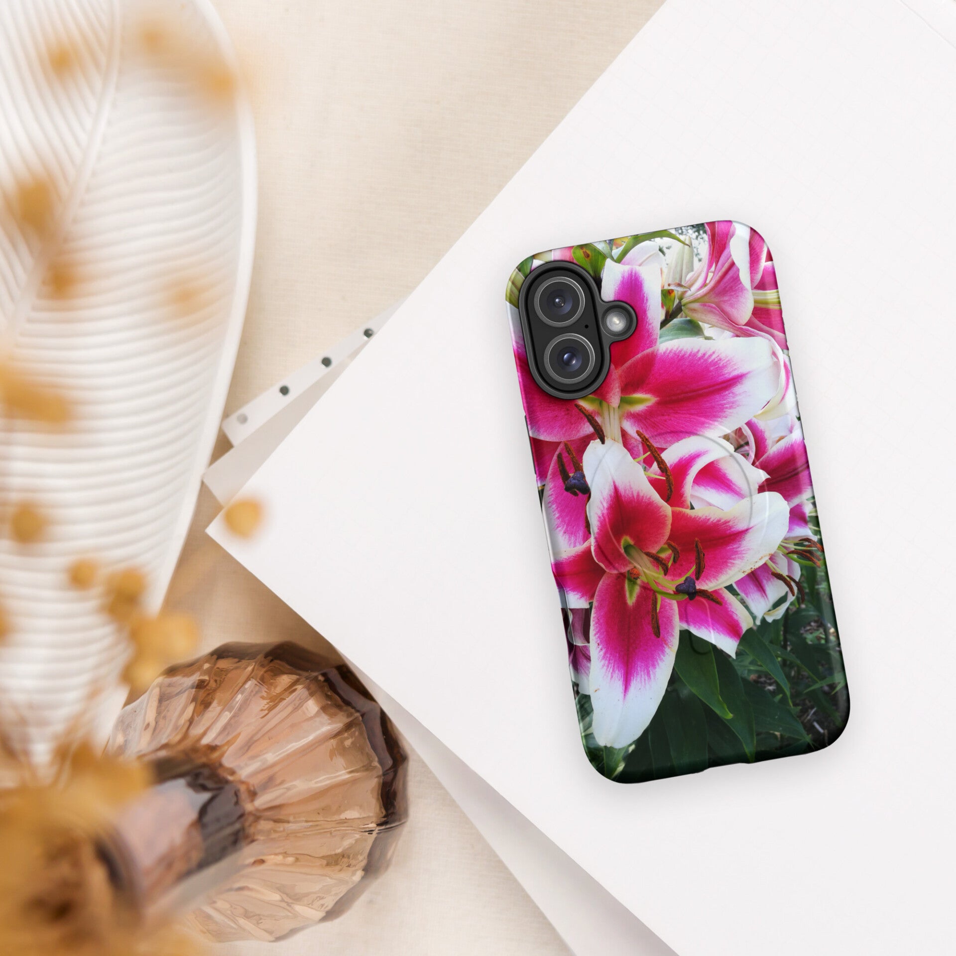 Made with a dual layer for extra durability and protection, this tough case keeps phones safe with an impact-resistant outer shell and an impact-absorbing inner liner. The built-in magnets ensure a secure attachment, faster wireless charging without removing the case. In design creation is used real pink/white lilies photo. Photo was taken in Latvia. All copyrights of design reserved by Elfie's world.