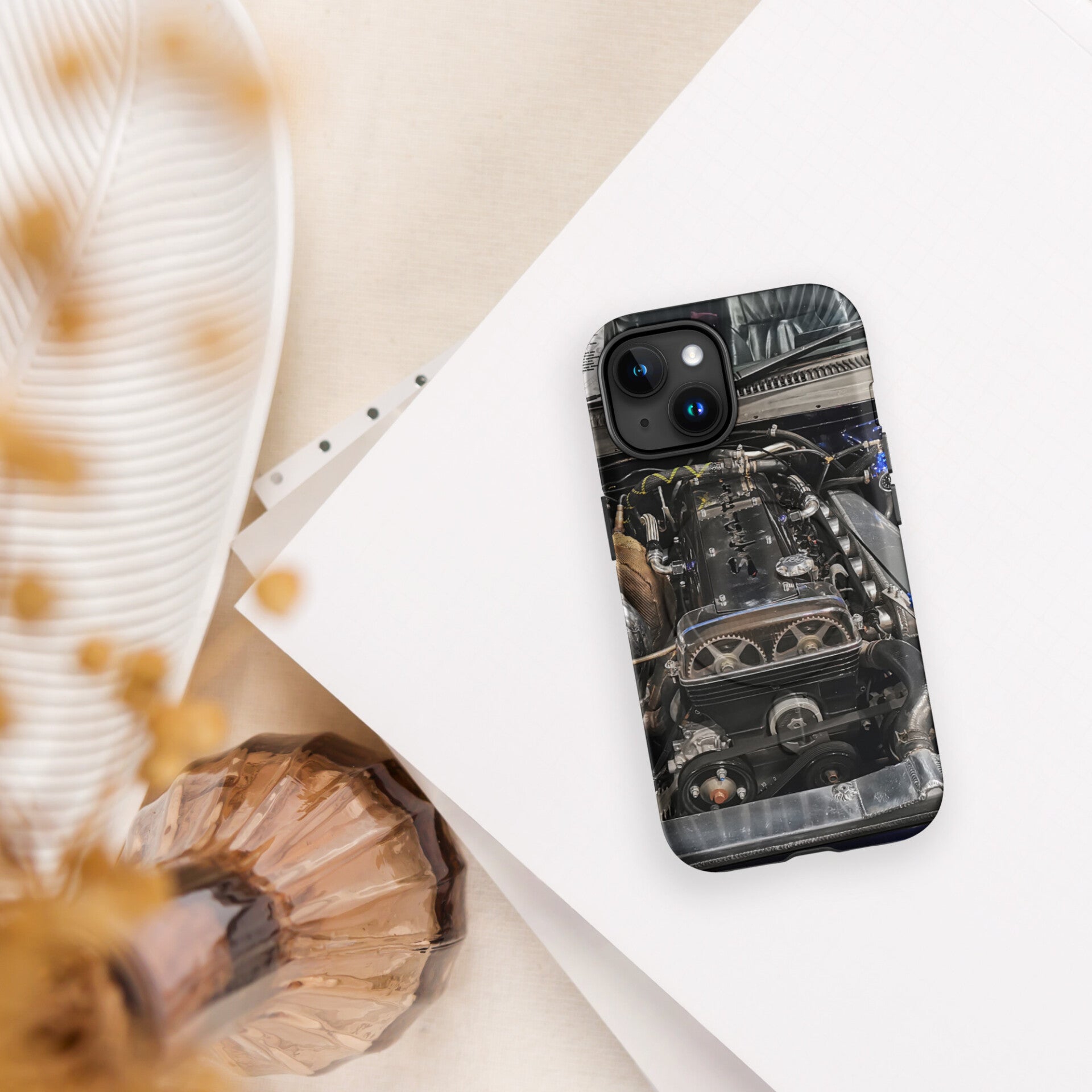 Made with a dual layer for extra durability and protection, this tough case keeps phones safe with an impact-resistant outer shell and an impact-absorbing inner liner. The built-in magnets ensure a secure attachment, faster wireless charging without removing the case. In design creation is used real car engine photo. Photo was taken in car show in Rotterdam, Netherland. All copyrights of design reserved by Elfie's world.